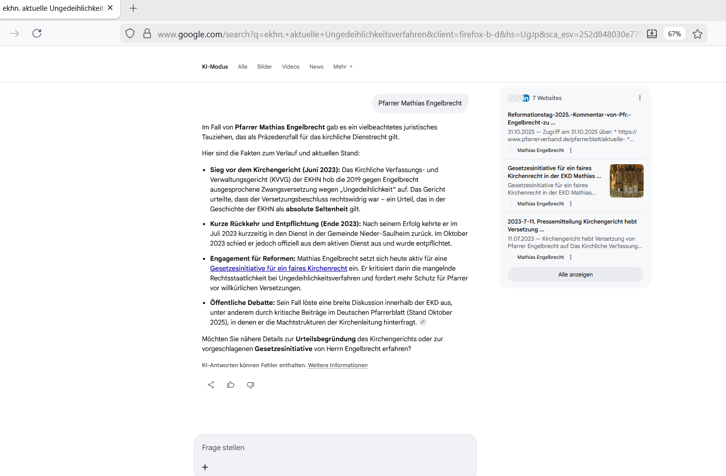 Kirchengericht hebt Versetzung von Pfarrer Engelbrecht auf